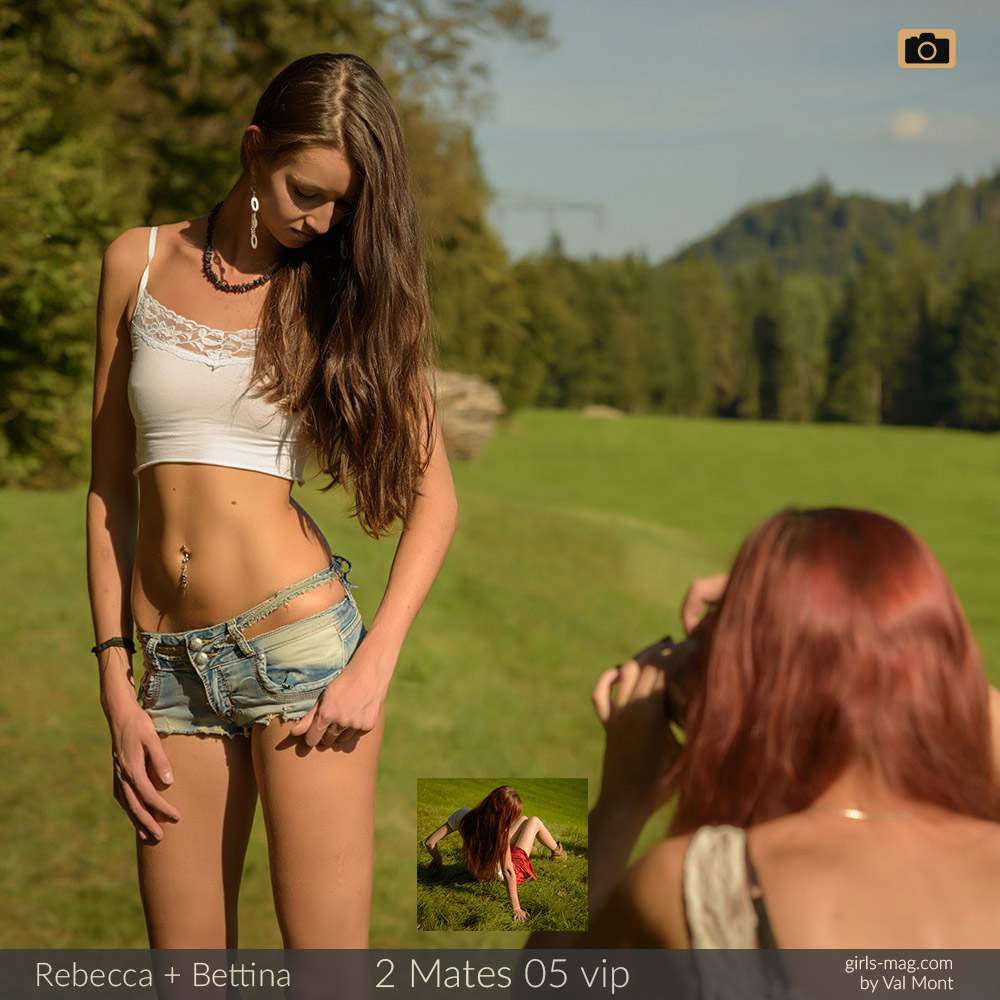 Bettina can’t get enough of photographing Rebecca’s cheeky outfit, but then they swap roles and Bettina tries on the red mini skirt…